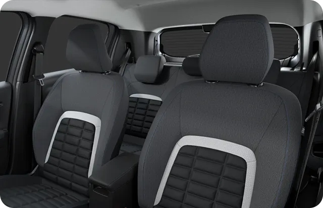 シトロエン独自の発想により、この上ない快適さを生み出すアドバンストコンフォートシート。広い座面幅のシート中心部は低反発の高密度フォーム、表層部にはパッド構造を持つ15mmもの厚さの柔らかなフォームを採用。シート中央部は柔らかく、サイドサポート部はしっかりとした感触を持ち、快適さとホールド性を高いレベルで両立。長時間のドライブでも姿勢を保ちやすく、疲労を大きく軽減します。この座り心地こそがシトロエン、と思っていただけるアイコニックなシートです。